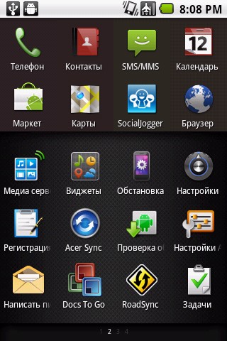 Для активных пользователей социальных сетей есть приложение Acer SocialJogger, объединяющее возможности Facebook и Twitter. Имеется также предустановленный Google Talk, сервисы веб-навигации, реализована поддержка Flash, виджетов, защиты телефона, синхронизации через приложение RoadSync, голосовой поиск и т.д.