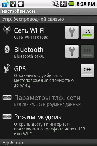 Для начала в «Настройках приложения» можно выбрать графический интерфейс для работы: Android или фирменный Acer. В обоих случаях, навигация по приложениям вполне удобна и не вызовет затруднений. Запущенные приложения можно прокручивать на рабочем столе.