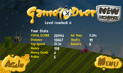 Несмотря на неповоротливость пчелы, управлять ей на удивление просто. Просто нажмите и удерживайте экран, чтобы придать нужное ускорение, а затем отпустите и наслаждайтесь её неуклюжим полётом. С помощью этих нехитрых манипуляций, Вы должны собирать соты, пыльцу и капли мёда. Также Вы получаете дополнительные очки за плавное приземление и теряете их от жёстких посадок. По мере Вашего прогресса в прохождении игры, увеличивается и количество зарабатываемых баллов.
