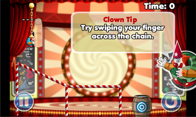Все клоуны подвешены на золотых цепях, словно ёлочные игрушки. Чтобы привести артиста в движение и запустить цепочку действий, игроку нужно перерезать эти самые цепи лёгким движением пальца. Всем любителям физических головоломок непременно понравится то, с каким старанием авторы подошли к конструированию игры. Разнообразие предметов, расставленных по уровням, порадует даже самых привередливых геймеров: тут Вам и качели, и пушки, и волшебные шляпы - словом, есть где развернуться во всю мощь своего интеллекта.