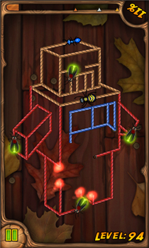 Единственное сходство с легендарным творением студии Zeptolab - наличие слова "Rope" в заголовке. В остальном "Burn the Rope" - это абсолютно самостоятельное произведение с оригинальной идеей и незаурядной механикой. Цель игры - уничтожить как можно больше верёвок. Для этого мы должны зажечь огонь и не давать ему потухнуть как можно дольше. Как и в реальной жизни, языки пламени стремятся вверх, а потому для того, чтобы поддерживать горение, нам постоянно придётся вращать смартфон вокруг своей оси в поисках оптимального угла. Всё управление производится с помощью акселерометра, что заметно добавляет в геймплей реализма.