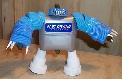 Военные в Афганистане проводят свой досуг, собирая роботов и статуэток из утильсырья - крышек от бутылок, пищевых контейнеров, стаканчиков от йогуртов и т.п.