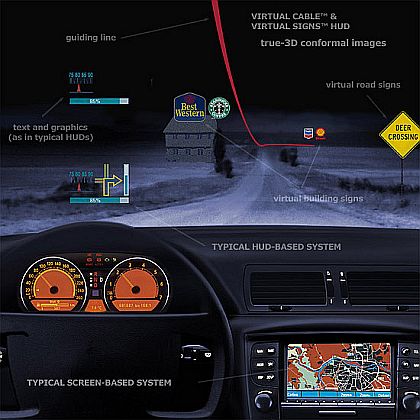 Их навигационная система True3D GPS проецирует на лобовое стекло различную путевую информацию, а также полноразмерный (с наложением на саму дорогу) трек-указатель в виде красной линии. Указатель простирается до горизонта и показывает все повороты, подъёмы и спуски, подстерегающие водителя в реальности.