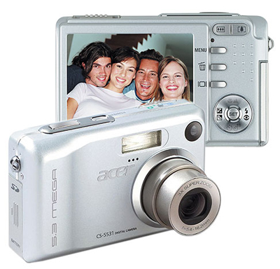 Acer CS-5531 - цифровой фотоаппарат любительского класса обладает хорошими характеристиками: 5-мегапиксельной матрицей с максимальным разрешением 2592 x 1944 точек и объективом с трехкратным оптическим зумом. Аппарат сделан из алюминиевого корпуса, с очень ярким и четким 2,5-дюймовым дисплеем. Чувствительность изменяется автоматически или вручную: 50, 100 или 200 единиц ISO. Питание осуществляется от литий-ионного аккумулятора. Файлы записываются на карту формата SD.