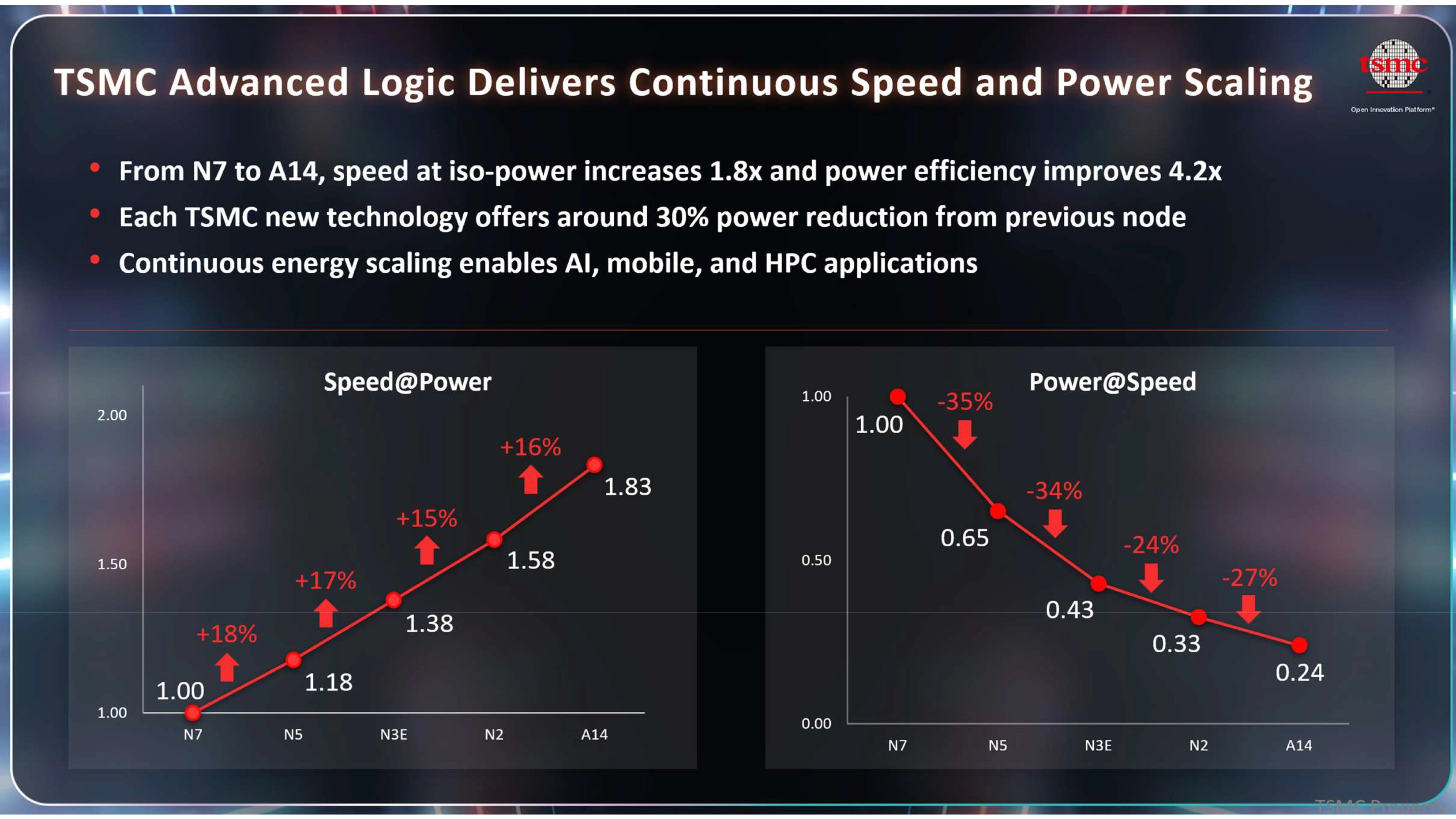 TSMC заявляет о 4,2-кратном росте энергоэффективности за десятилетие — от N7 до A14