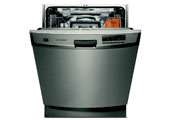 Управление процессом мойки осуществляется электроникой. На дисплее отображается время до окончания работы (при обычной программе мойки машина работает 150 минут). Наличие соли и ополаскивателя показывает специальный индикатор. Степень загрузки распознаётся автоматически, а вот режима половинной загрузки у этой модели не предусмотрено. Турбосушка обеспечивает быстрое высыхание посуды, так что класс сушки высший — А. По показателям расхода воды и уровня шума посудомойка от «AEG» чуть хуже машины от «Miele», но совсем не на много: «AEG» F 60870 M тратит за цикл 14 литров, а шумит на 45 дБ.