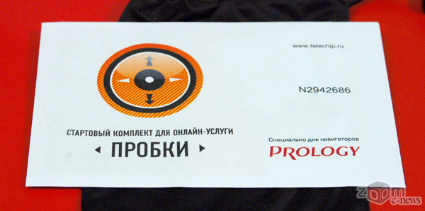 И отдельно надо сказать о довольно богатой комплектации навигатора. Помимо самого Prology iMap-542TG, там же мы найдем кабель USB-microUSB, автомобильный кронштейн на довольно мощной присоске, инструкцию и гарантийный талон,не говоря уже, конечно, о зарядке от прикуривателя. Все это довольно традиционные элементы комплектации большинства навигаторов, а нетрадиционными и приятными элементами назовем симпатичный матовый чехол черного цвета с логотипом компании и стартовый комплект с SIM-картой.