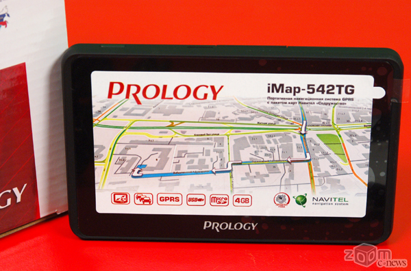 Новый навигатор от Prology является одним из последних представителей линейки iMap, впервые представленной еще в 2010 году, и пополняет ее моделью 542TG. Главная отличительная особенность этой модели заключается в наличии встроенного GPRS-модема, с помощью которого можно преодолевать пробки в городе, оперативно получая информацию о них. Но до этого мы еще дойдем, а пока расскажем про внешний вид устройства.