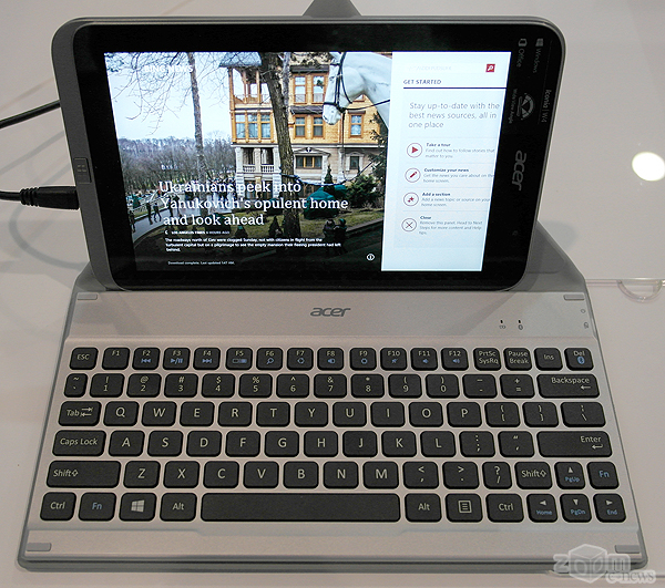 Среди прочих экспонатов стенда Acer был замечен планшет на Windows 8 на обновленной платформе Intel. Как и предшественники, новая инкарнация P3-171 может похвастать хорошим соотношением цены и качества. В виде аксессуара к планшету прилагается док-станция со встроенной клавиатурой.