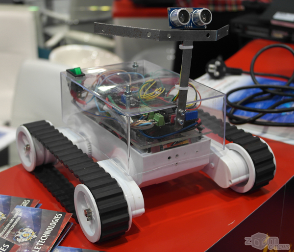 В заключение, возвращаясь к теме присутствия россиян на выставке отметим и стенд Министерства образования и науки, который расположился аккурат напротив стенда Yota Devices. На стенде Министерства было два заметных экспоната: макет учебного спутника и небольшой самоходный робот. О втором мы выяснили несколько деталей. Основное предназначение робота в участии в учебном процессе профильных ВУЗов.