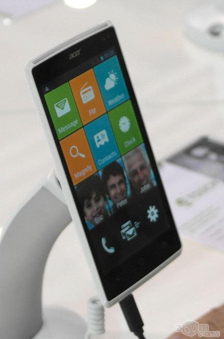 Не были, разумеется, забыты и смартфоны. Ключевой новинкой выставки стал Acer Liquid Z4, показанный на публике впервые. Сама линейка Z больше относится к среднему и начальному сегментам (в зависимости от конкретной модели), но впечатления дешевизны при личном знакомстве не возникает, напротив, оригинальный дизайн и собственный интерфейс ОС Android говорят о большой проделанной работе. При изучении смартфона обнаружился ряд интересных и полезных особенностей. Во-первых, функция Live Screen, которая позволяет соединить несколько смартфонов в единую сеть (до 5 устройств) без использования стороннего беспроводного оборудования. В таком режиме вы можете проводить импровизированные обсуждения проектов, писем или проводить тренинг.