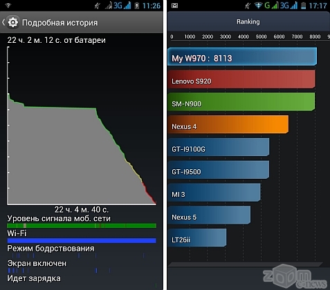 Как можно видеть по результатам тестирования батарейки в AnTuTu Tester, Haier W970 обгоняет многие популярные модели по показателю автономности.