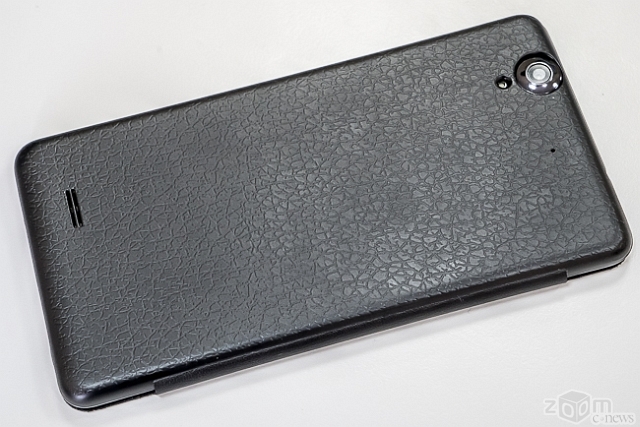 Тыльная поверхность у чехла приятная на ощупь — она сделана из пластика, но с текстурой «под кожу». Нечто подобное мы видели у другого известного производителя фаблетов.