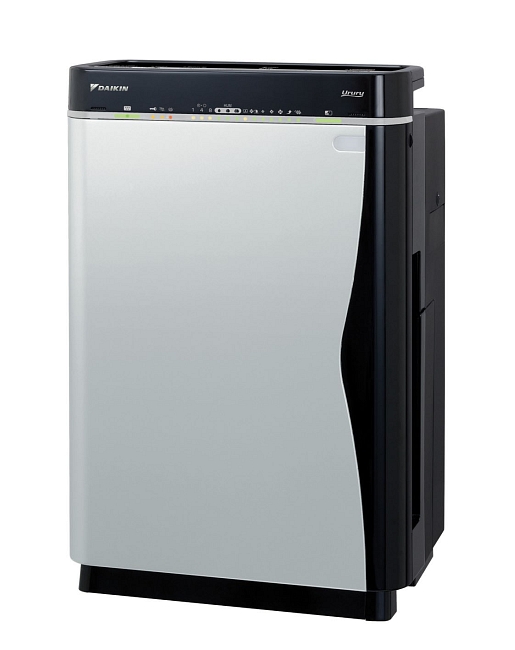 Далее идет одна из самых продвинутых «моек воздуха», по нашему мнению — производства Daikin (производитель, который в принципе занимается климатической техникой вообще). Речь идёт о модели Daikin MCK75JVM-K, которая стоит в среднем 40 тыс. рублей по состоянию на конец июня 2015 года в России, и около 600 евро в среднем по Европе соответственно. У неё есть фотокаталитический, увлажняющий, кахетиновый и электростатический фильтры, которые не требуют замены, но требуют обслуживания: их нужно довольно часто чистить, но этот показатель можно снизить, заливая воду из фильтра-«кувшина» (это, кстати, относится и к ультразвуковым увлажнителям). Аппарат предназначен для работы в полностью автоматическом режиме: с помощью пульта ДУ задаете необходимые параметры воздуха, и он их поддерживает периодическим включением и отключением как встроенного увлажнителя, так и собственно системы очистки воздуха с фильтрами. Аппарат мгновенно реагирует на любые посторонние запахи (к примеру, духов или бытовой химии), удаляет из воздуха разнообразные вирусные бактерии, есть бесшумный ночной режим… в общем, модель отличная, хотя и стоит очень прилично.