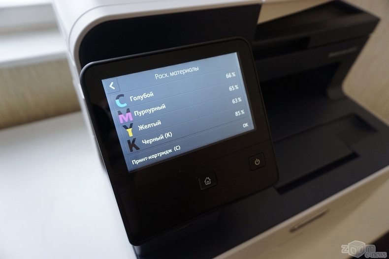 Меню интуитивно понятное, на русском языке. Оно разбито на отдельные иконки, что вполне привычно для пользователей iPhone или Android-смартфонов. Таким образом, мы получаем хорошо знакомую структуру, пояснительные надписи о том, что это за функционал, и возможность наглядно все настроить без долгих вчитываний в инструкцию. Такой подход быстро подкупает, и потратив на изучение всех пунктов меню 10 минут, можно сказать, что белых пятен в понимании того, как работает устройство, не останется. Отдельного упоминания достоин пункт меню с процентным показателем ресурса расходников, разбитый по отдельным цветам, что изрядно упрощает отслеживание их объема.