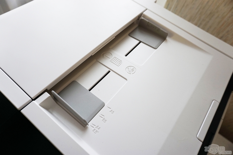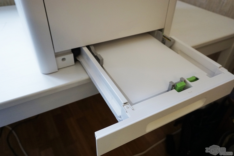 Кроме того, многие элементы дизайна отлично совместили в себе функционально удобные решения, такие как доступ к тонер-картриджам на передней панели или лотку загрузки бумаги в нижней части (поддерживает до 300 листов бумаги и может быть расширен посредством отдельно купленного модуля). К каждому внутреннему элементу принтера крайне удобно получить доступ, и это не рушит монолитности конструкции.