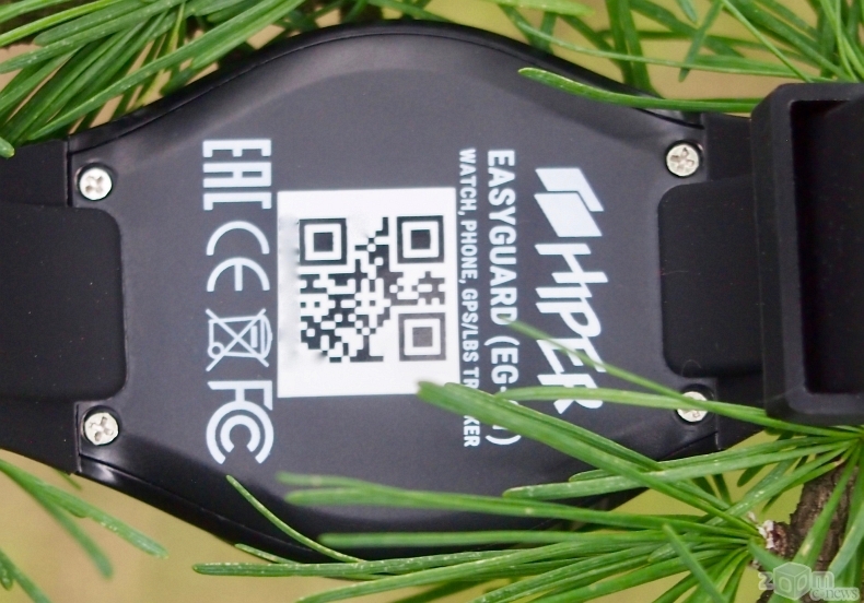 На задней панели корпуса часов помимо крепежных винтов находятся служебные символы, серийный номер и QR-код для подключения в фирменном приложении. Стоит также обратить внимание, что корпус и его форма в данной модели заметно отличается от EasyGuard - ремешок является составной частью корпуса. При этом на небольшой руке такая конструкция не переламывается и сидит довольно надежно.