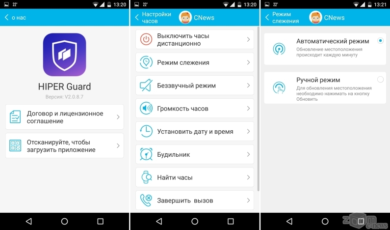 Функции HIPER Guard необходимые и достаточные, а настройки логичные. В данных параметрах можно дистанционно отключить устройство, задать режим слежения, включить беззвучный режим и настроить громкость, выставить текущую дату/время и будильник, а также найти часы и завершить текущий разговор.