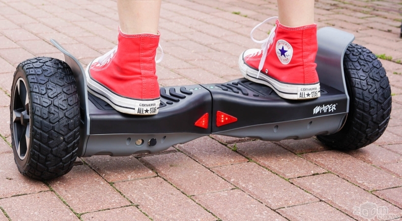 Во-вторых, HIPER EX90 это, всё же, не модель начального уровня, размер его колёс – 9 дюймов (против 6,5 у большинства бюджетных китайцев), плюс «внедорожные» возможности. На этой модели можно не только кататься с ветерком по летним асфальтовым дорожкам, но также без труда преодолевать осенние парковые и лесные тропинки. Высокий дорожный просвет (40 мм) и мощные широкие колеса позволят проехать и по гравию, и по мокрому песку, и по небольшим лужам. Если воспользоваться автомобильной терминологией, то HIPER EX90 — это, своего рода, «паркетник» среди гироскутеров. С учётом вышесказанного цена 16 990 рублей уже не представляется столь уж пугающей и невыгодной. И, если прибавить к этому известность торговой марки HIPER, наличие россйиского представительства и гарантийного обслуживания, гироскутер HIPER EX90 выглядит вполне удачным приобретением.