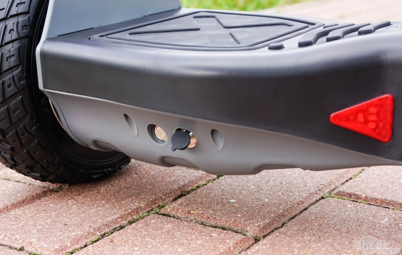 А ещё на задней части корпуса гироскутера HIPER EX90 можно обнаружить разъем для зарядного устройства и кнопку включения. Как и у большинства современных моделей штекер для зарядки трёхконтактный, напряжение питания 42 Вольта.