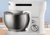 Мощный планетарный миксер, который комплектуется 1,2-киловаттным электромотором и 6-литровой чашей. Причем, материалом емкости, в котором выполняется перемешивание ингредиентов, выбрана нержавеющая сталь, что повышает ее долговечность. Чаша легко снимается, а для удобной переноски комплектуется ручкой. Избежать разбрызгивания продуктов позволяет прозрачная пластиковая крышка емкости, а загружать ингредиенты во время работы можно через широкий загрузочный желоб.