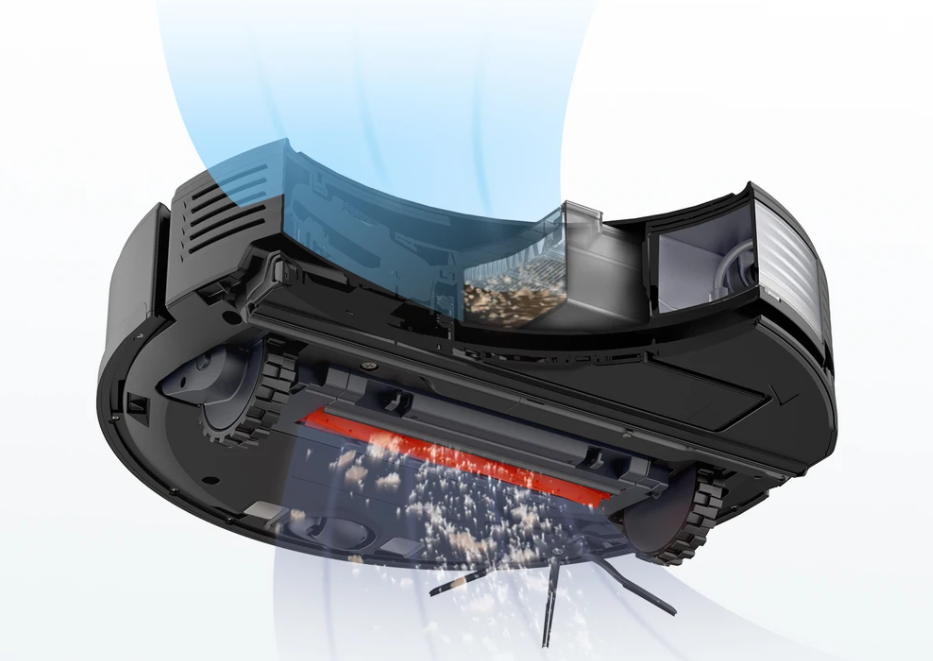 Вместительность пылесборника составляет 470 мл. За автономность устройства отвечает аккумулятор емкостью 5200 мАч, возможностей которого хватает на три часа работы. Если заряд закончится раньше, чем уборка, пылесос самостоятельно вернется на базу, пополнит запасы энергии, а потом также самостоятельно вернется к месту, где ему пришлось остановиться. Двигатель модели выдает мощность в 2500 Па, чего более чем достаточно для уборки любого уровня сложности.