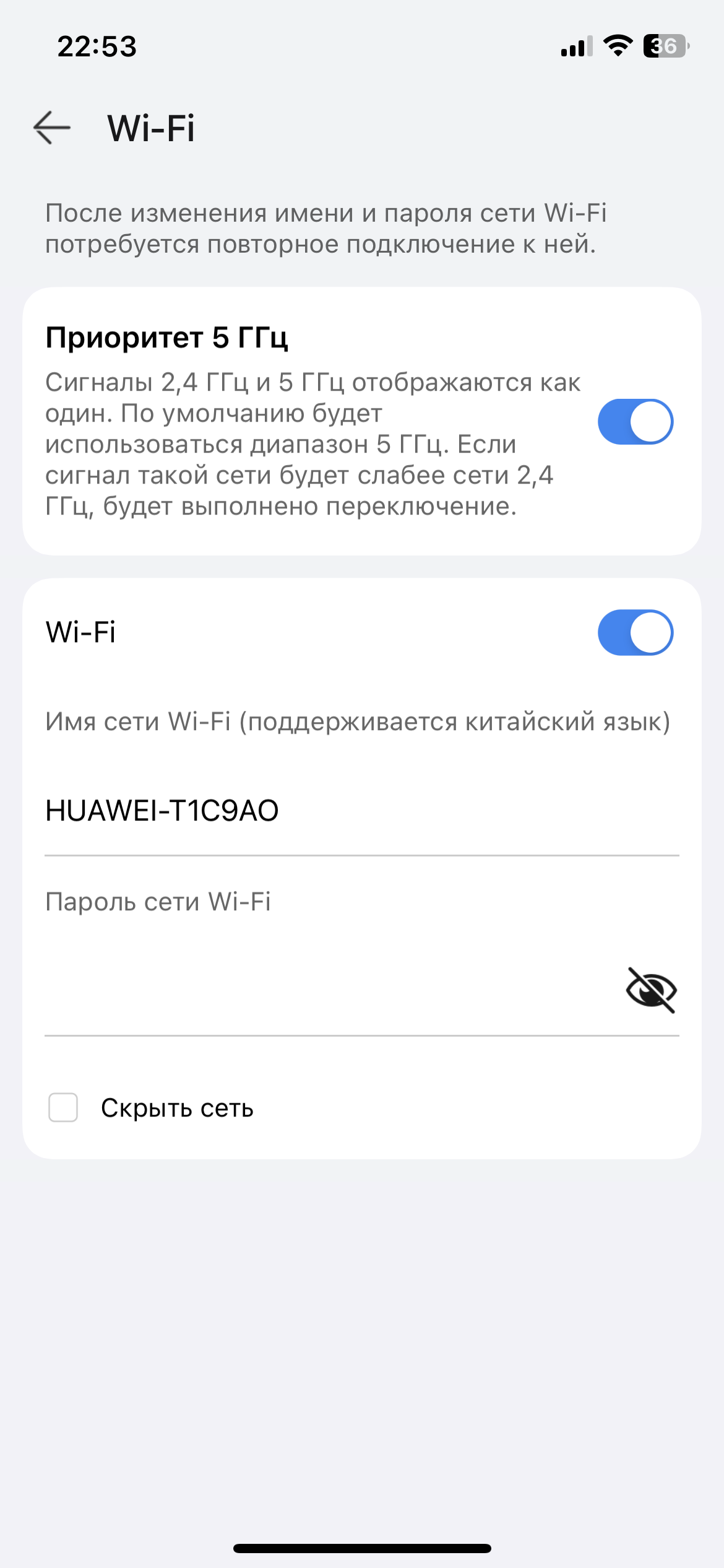 В настройках, соответственно, задается лишь одна точка доступа. Однако, если по каким-то причинам требуется отдельная сеть для частоты 5 ГГц, то в приложении можно создать резервную за пару секунд.