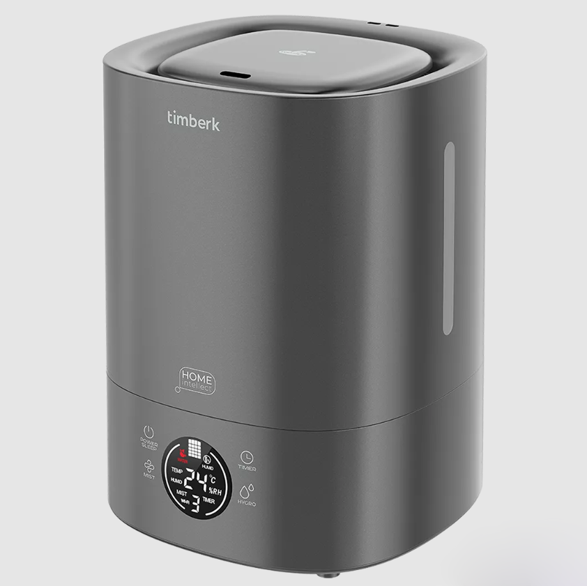 Сенсорные кнопки находятся вместе с дисплее в нижней части корпуса увлажнителя. Timberk A102E-WF поддерживает большое количество дополнительных настроек, например, можно установить сценарий при отсутствии воды или запуск/выключение при достижении определенных параметров влажности воздуха.