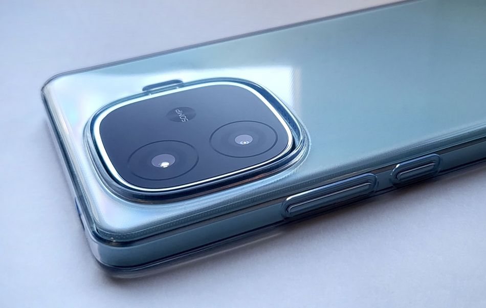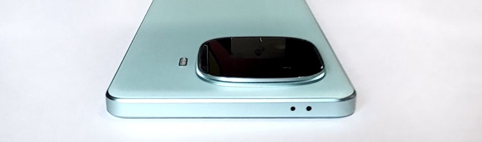 Блок камер, встроенный в площадку в форме суперэллипса, слегка возвышается над спинкой. В пространство черной глянцевой поверхности вписаны два глазка объективов, а вспышка находится за его границами — справа. Края блока камер оторочены кантом под металл с фрезеровкой.