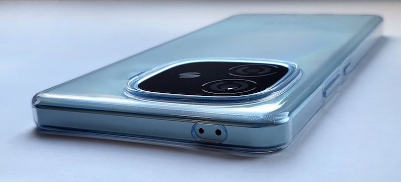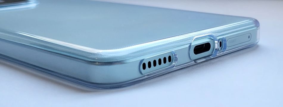 Торцы выкрашены под металлик. На нижнем — расположились лоток для двух nanoSIM, отверстие для микрофона и основного динамика и порт USB Type C. Сверху — окошко ИК-порта и отверстие вспомогательного микрофона.
