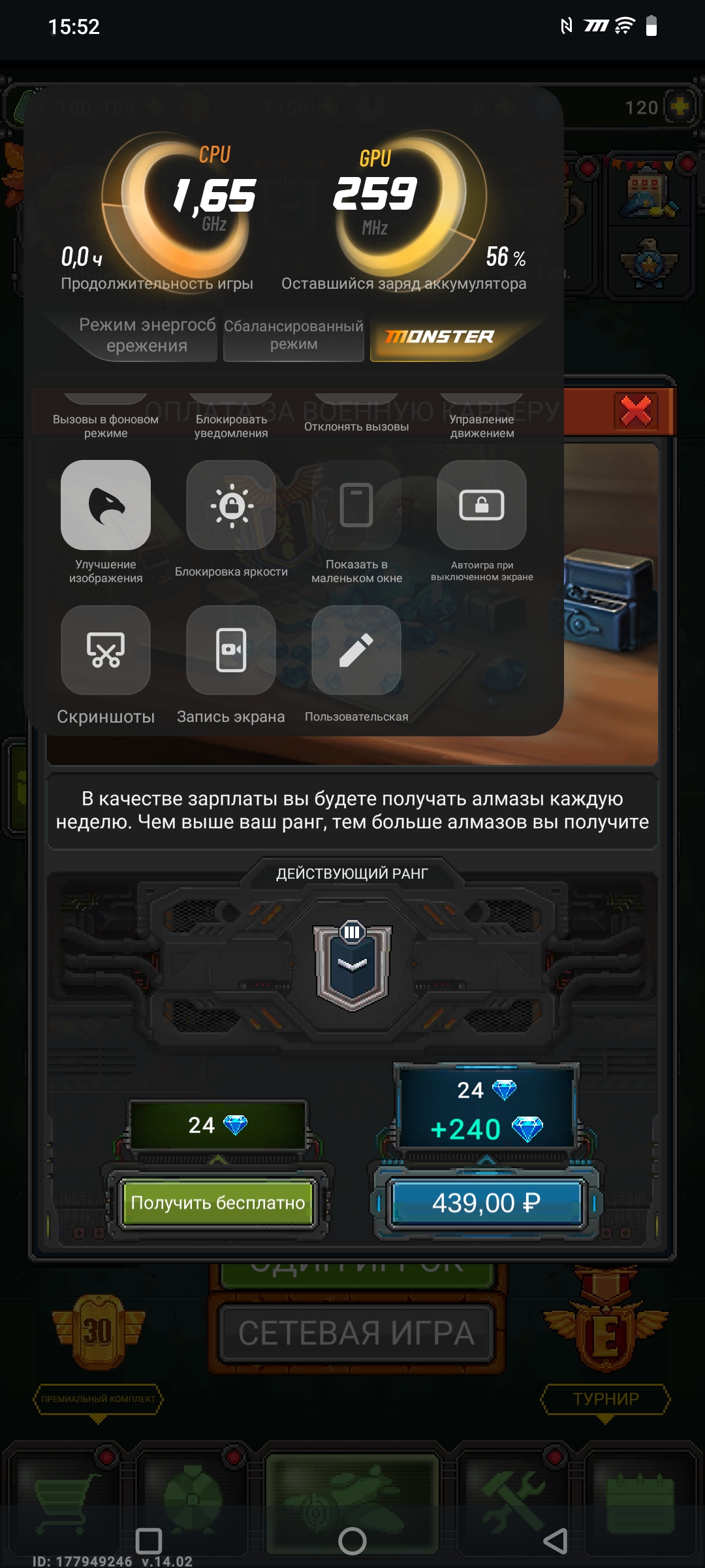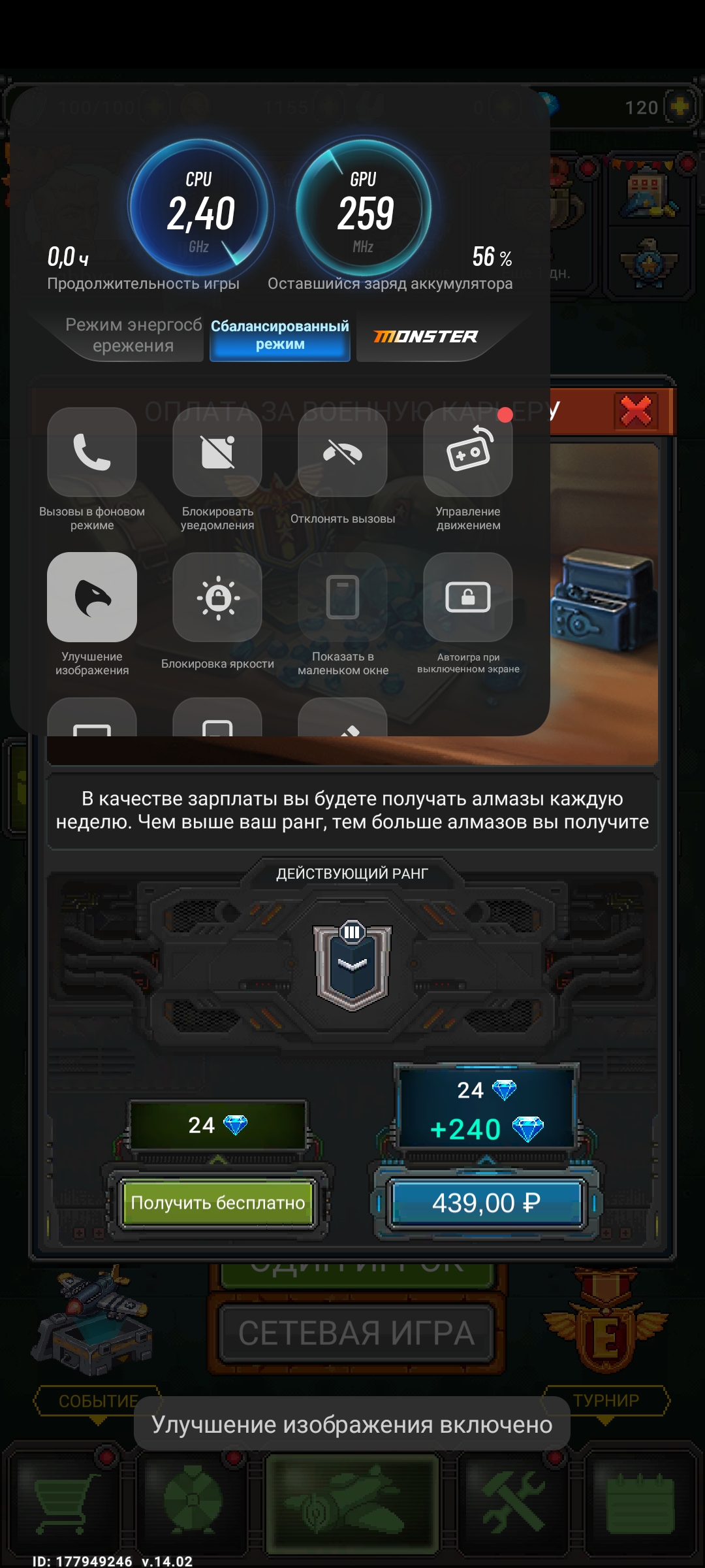 Специальная шторка при запуске игр позволяет настраивать разные режимы и сценарии эксплуатации устройства, она весьма красноречива, в цвете, демонстрирует пользователю выбранные настройки.