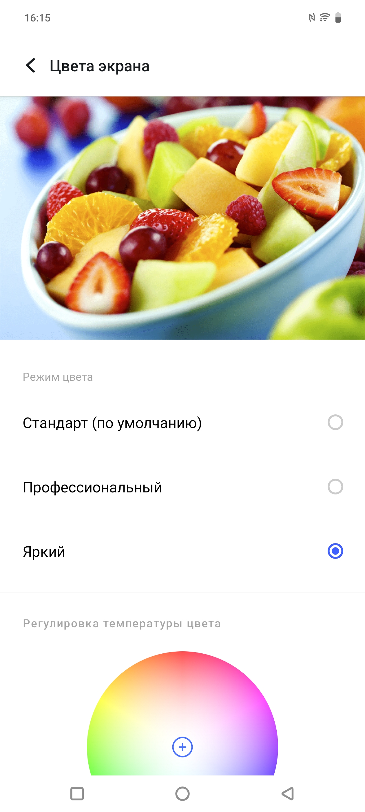 Диагональ дисплея — 6,78 дюймов с разрешением 2800 Ч 1260. Это AMOLED матрица, со всеми вытекающими из этого приятными последствиями — отличные цветопередача и углы обзора, практически идеальная контрастность и большой запас яркости. При желании можно отрегулировать температуру цвета или выбрать подходящую схему из предустановленных