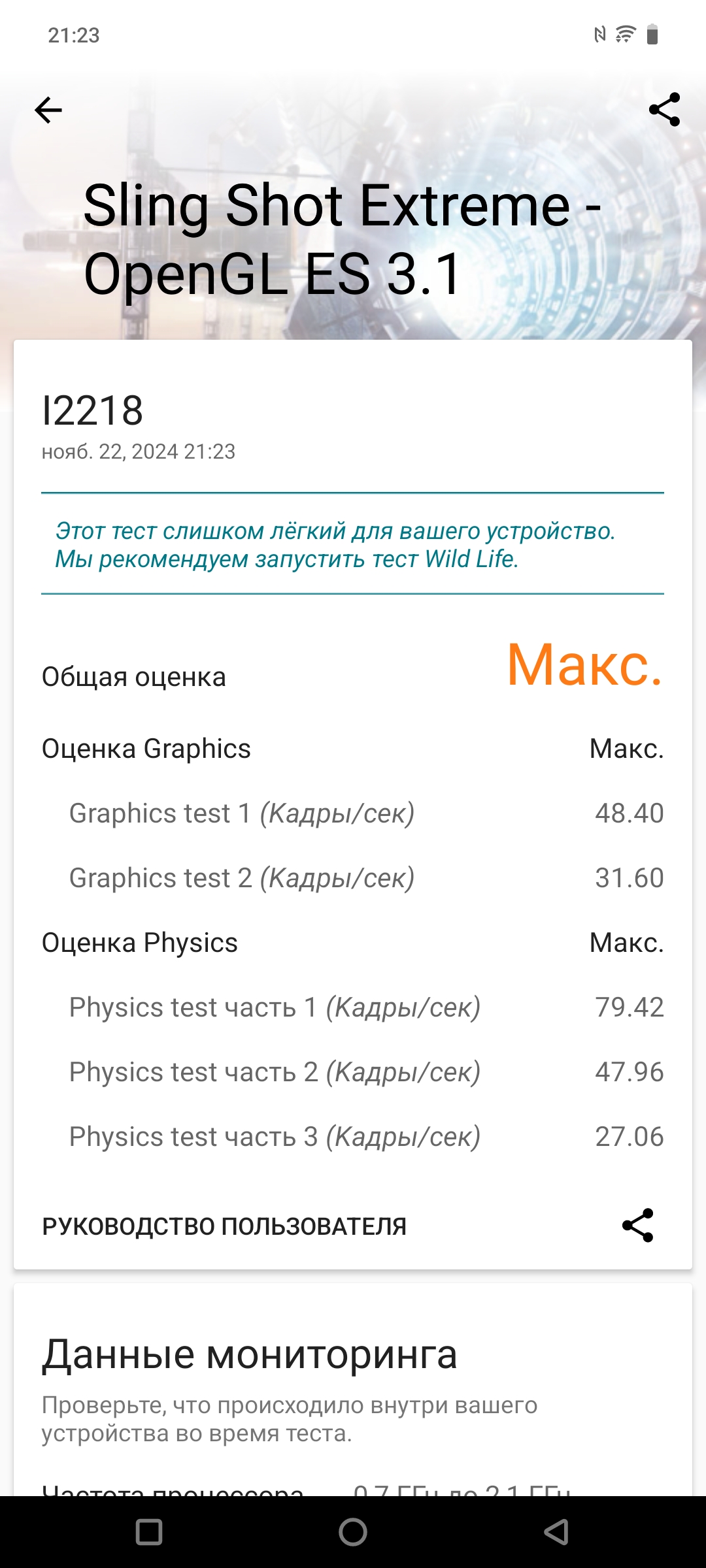Утверждается, что максимальная яркость может достигать 4 500 нит. В спецификациях же указано, пусть и кратно меньшее, но все равно впечатляющее значение в 1 200 нит. И оно, полагаем, выставляется только автоматически. Но отметим, что запаса хватало при любых обстоятельствах, даже на улице с очень ярким солнечным светом.