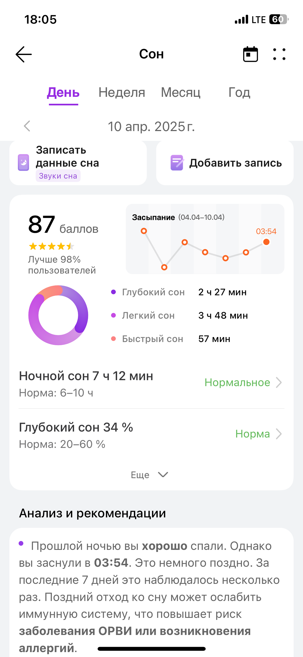 В частности, здесь очень продвинутый мониторинг сна. С учётом того, что гаджет легкий, он действительно не мешает ночью и поможет немного разобраться со сном, если проблемы не связаны с какими-то медицинскими состояниями вроде хронической бессонницы.