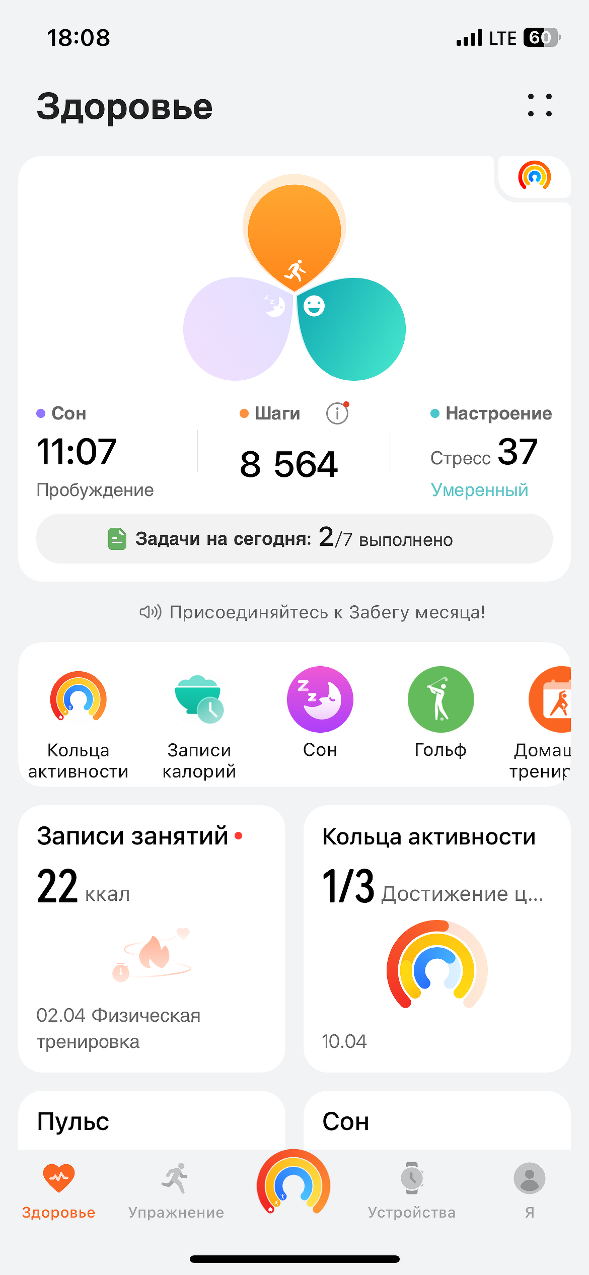 Разумеется, информация сводится воедино в мобильном приложении HUAWEI Здоровье. Тут все очень наглядно, в виде графиков. А фирменный «Клевер здоровья» поможет поставить дополнительные цели, которые позволят немного улучшить ЗОЖ.