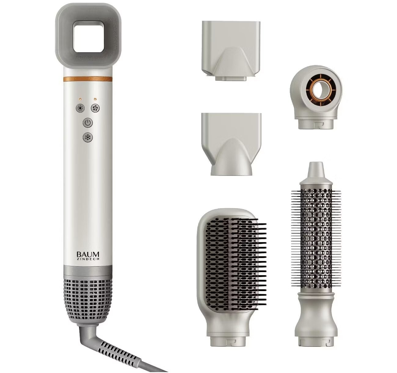 В комплект Baum Zindech F900 входят 5 насадок: Coanda для создания локонов, брашинг для прикорневого объема, специальная щетка для выпрямления волос, концентратор и насадка для сушки волос. Стайлер поставляется в комплекте с кейсом для транспортировки.