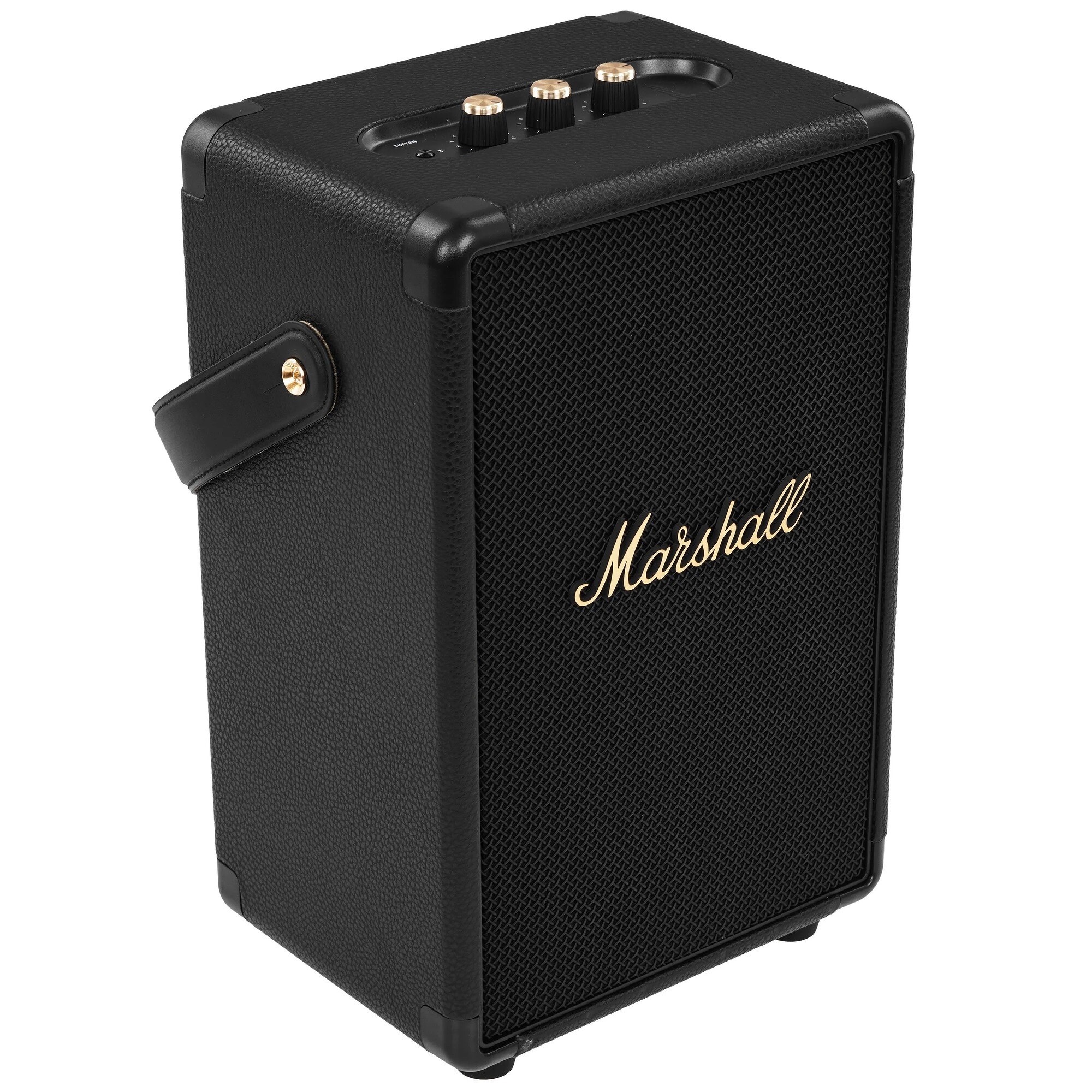 Суммарная выдаваемая мощность акустики – 80 Вт. Конфигурация акустики трехполосная, а динамики, у каждого из которых собственный усилитель, направлены вперед и назад, чтобы расширить направленность звука. На верхней панели Marshall Tufton расположены регуляторы громкости и тембра НЧ и ВЧ — можно настраивать звучание композиций по своему вкусу. Пользователи отдельно отмечают глубокие насыщенные басы — за это спасибо наличию фазоинвертора.