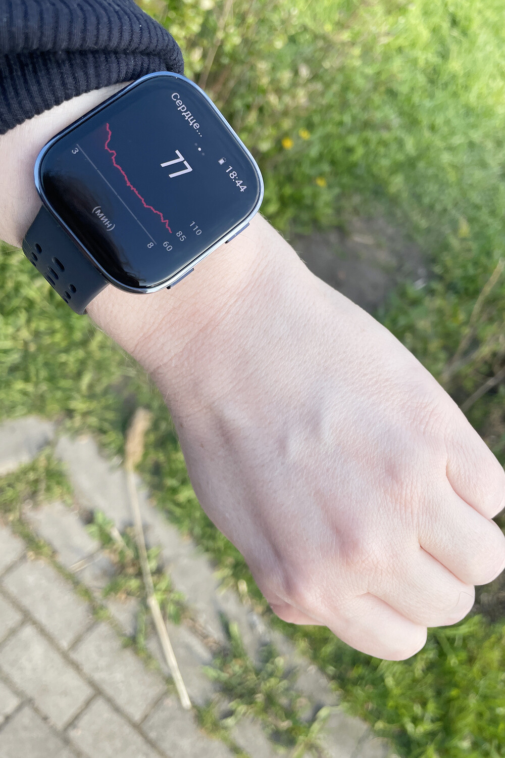 Также мы сравнивали данные пульсометра и шагомера с Apple Watch SE2. Разница в пульсе составила буквально пару ударов. А вот шагомер примерно на 1000 шагов занижает данные. Впрочем, на наш взгляд, это стимулирует пройти больше, что только на пользу.