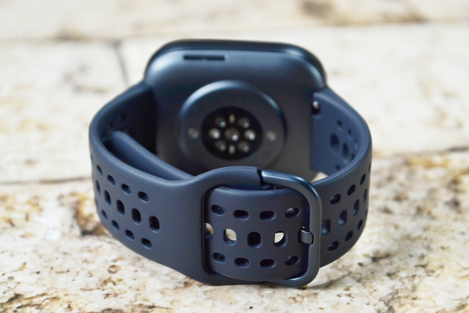 Силиконовый ремешок с перфорацией, конечно, отсылает к спортивному стилю. Застежка не совсем классическая, одной рукой ее бывает сложно застегнуть. Но зато нет риска, что браслет расстегнется случайно и часы свалятся с руки. Ремешок не натирает кожу, не собирает пыль и подходит для тренировок за счет перфорации. При желании его можно сменить.