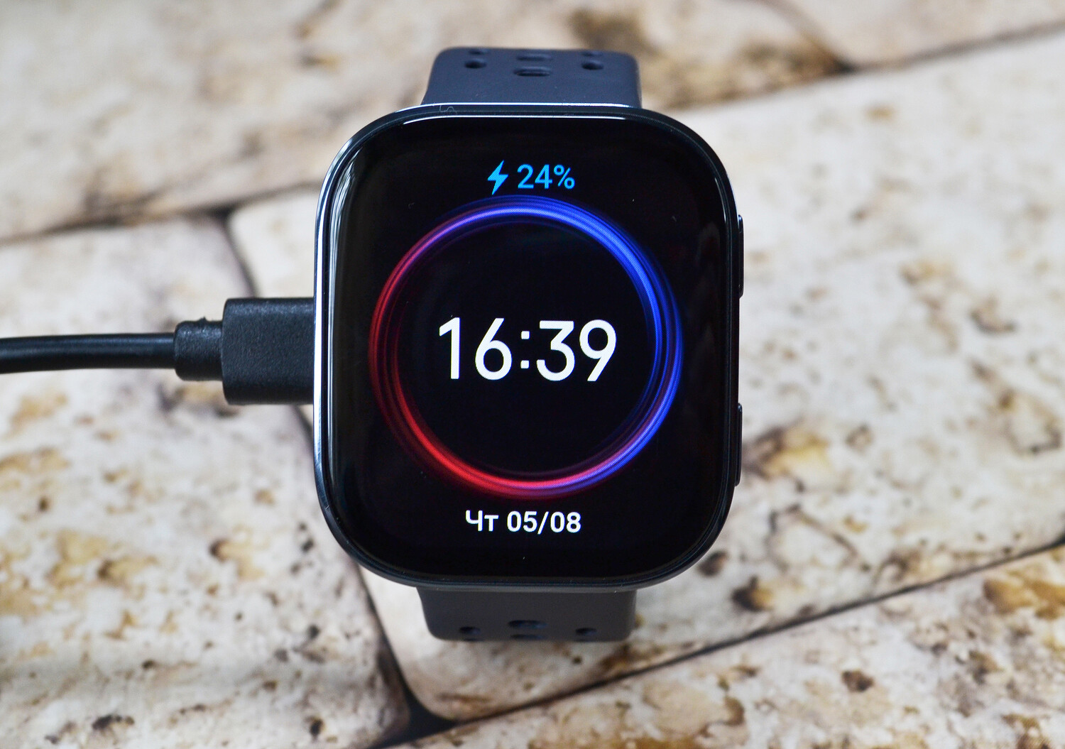 Магнитная зарядка прочно держится на корпусе часов и пополняет заряд полностью примерно за пару часов — тоже нормальный результат.