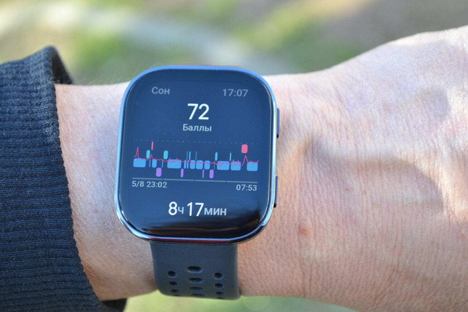 Что касается отслеживания сна, то данные можно назвать точными. Система достаточно неплохо определяет время засыпания и не путает его с периодом, когда просто лежишь неподвижно.