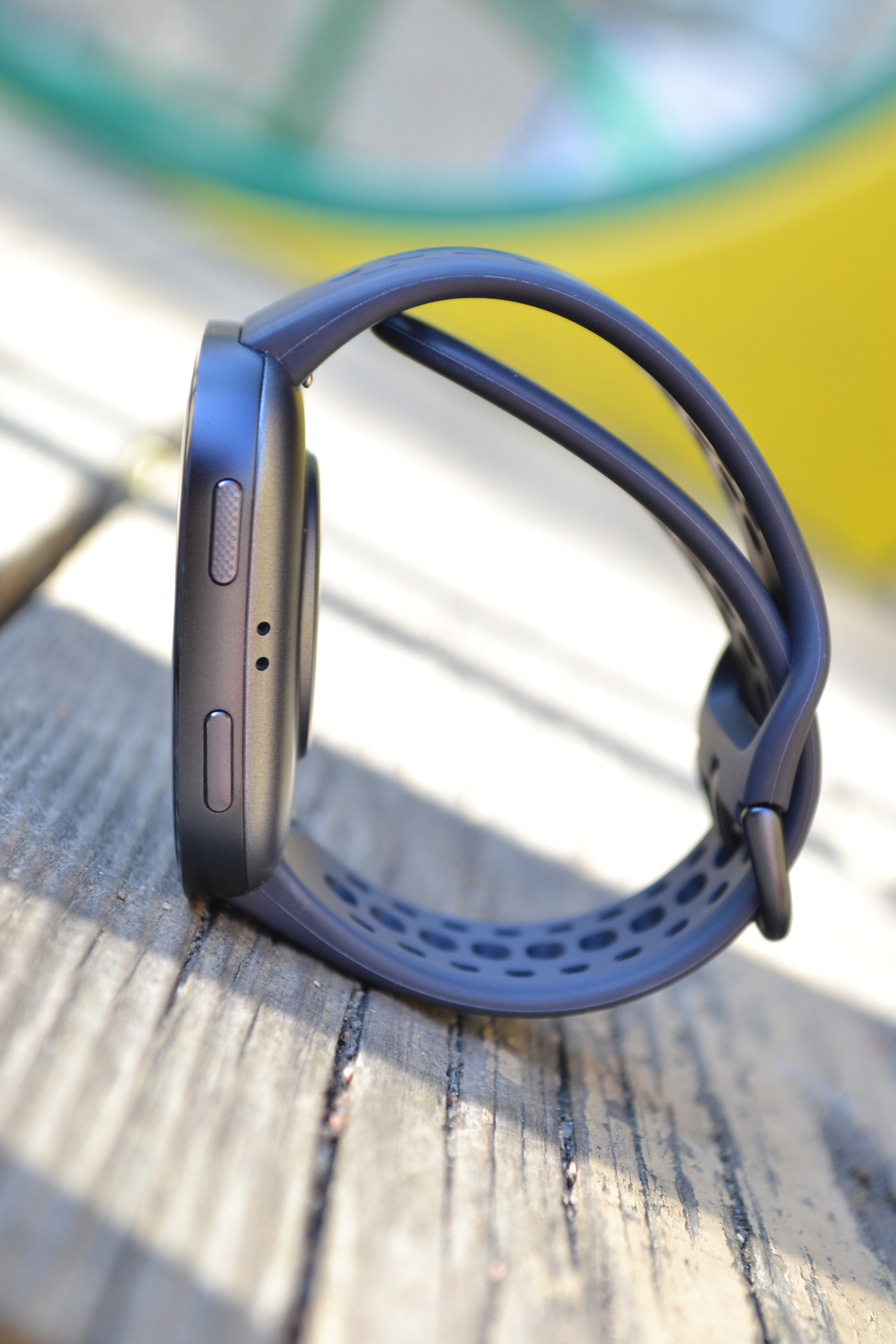 Вокруг дисплея — алюминиевая рамка, а задняя часть изготовлена из прочного, но легкого поликарбоната. В нашей тестовой лаборатории побывала модель в черном цвете, но есть и другие варианты расцветок ремешка.