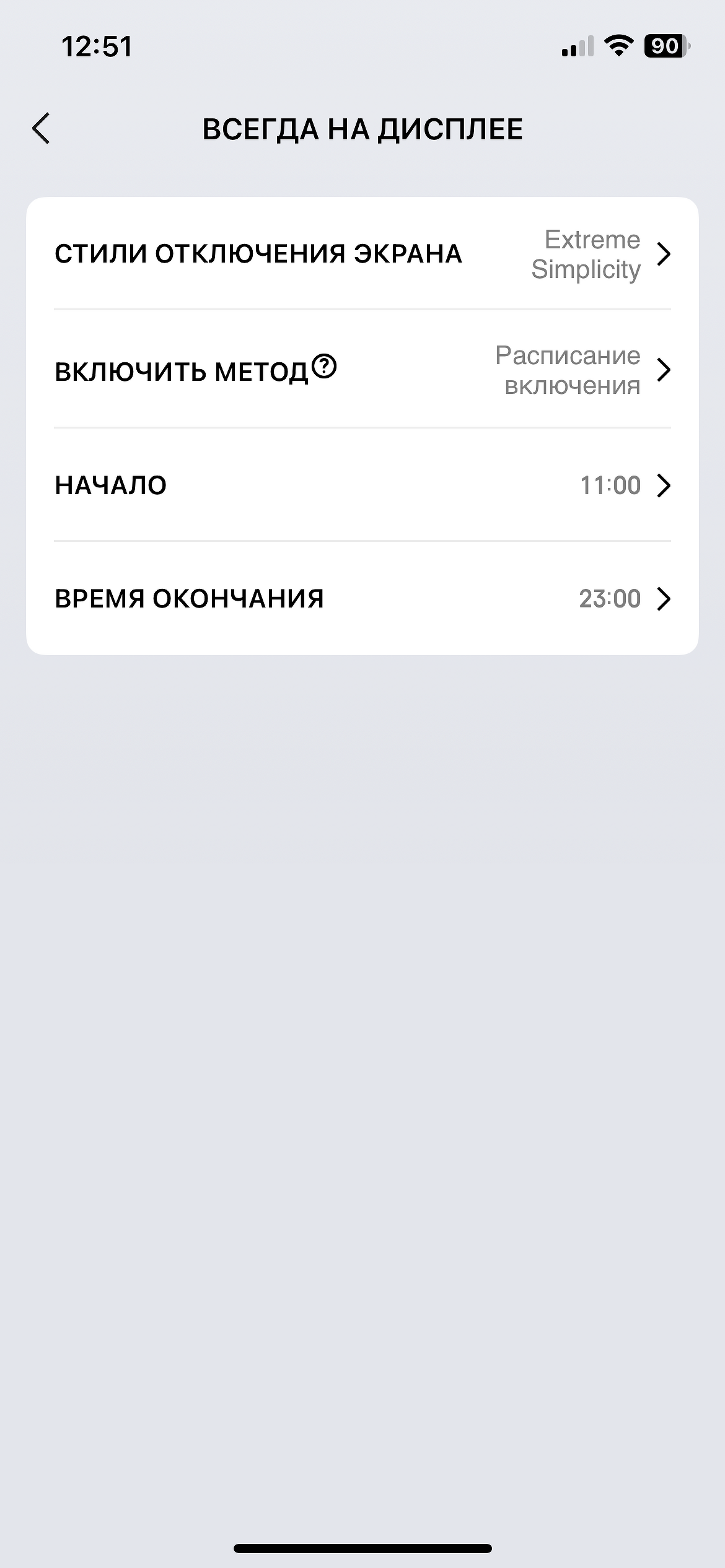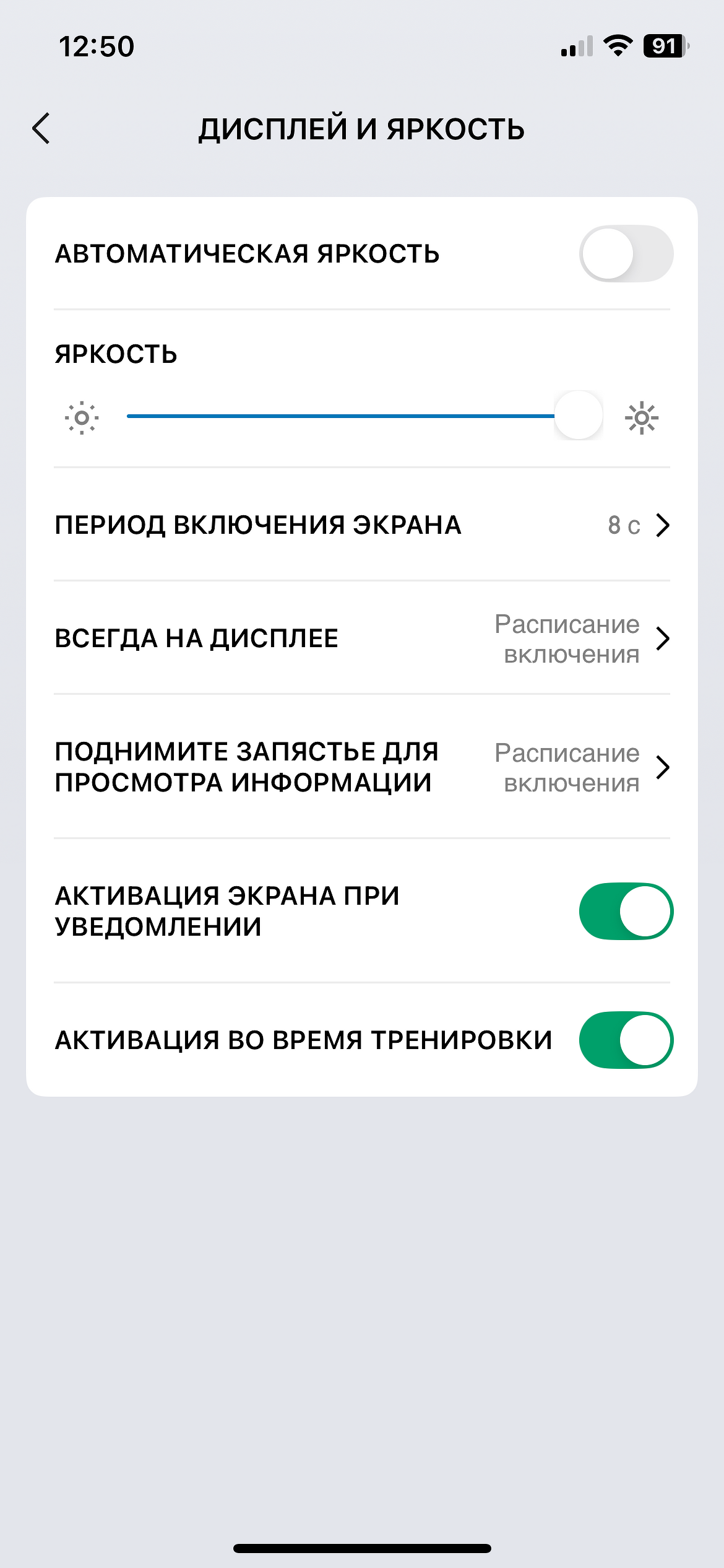 Отдельно отметим, что в мобильном приложении настраивается буквально все: есть возможность указать время, когда работает AOD, установить его расписание, выбрать стиль заставки, длительность активности экрана, время включения и выключения активации экрана подъемом запястья и другое. Такие возможности кастомизации — редкость на рынке, а еще это очень удобно.