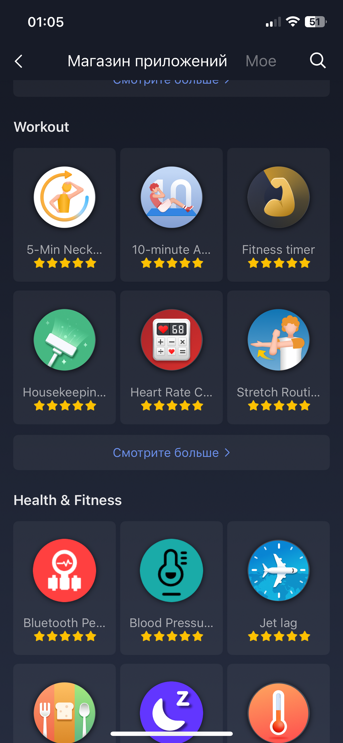 Часы работают под управлением Zepp OS — простой оболочки, которая без проблем справляется со стандартными задачами. Здесь есть возможность установки приложений, причем выбор довольно приличный.