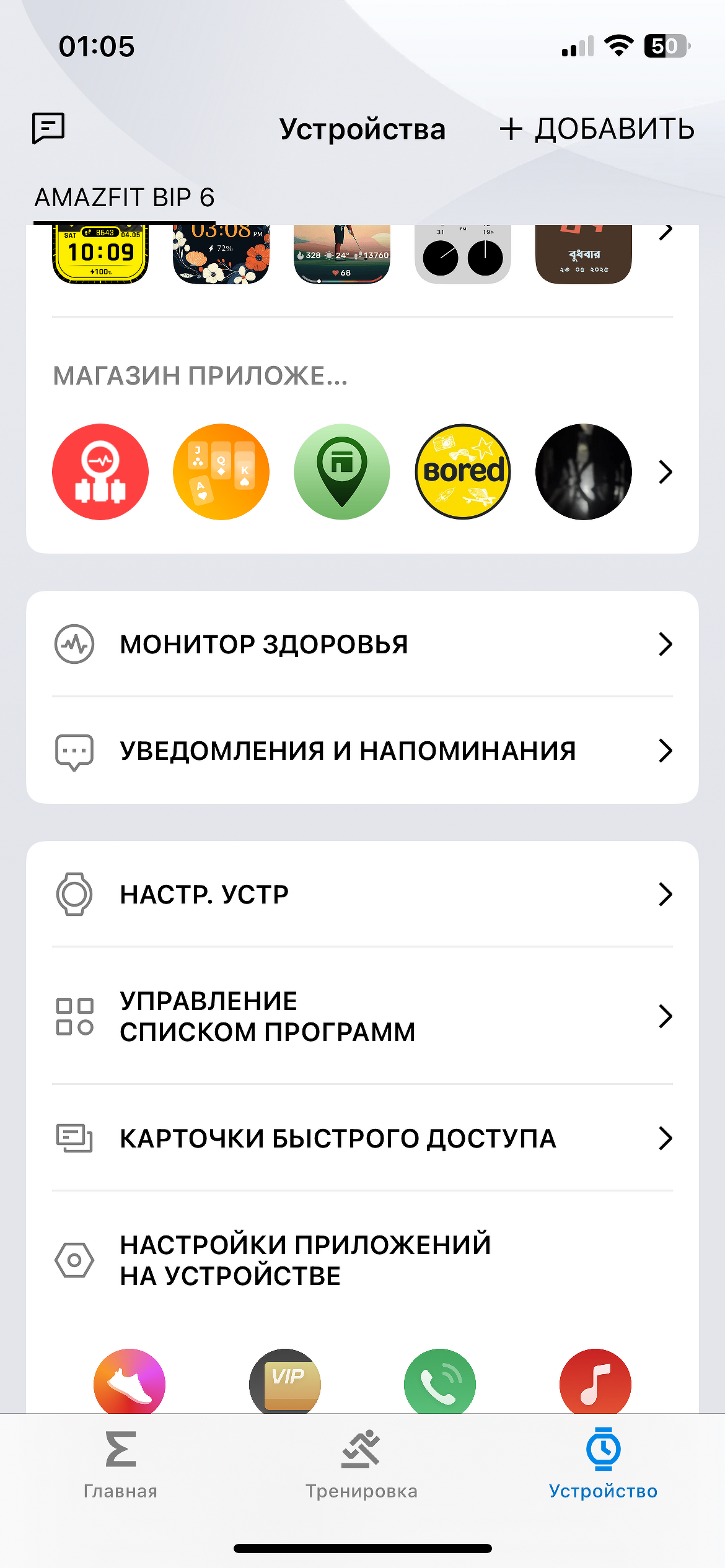Amazfit Bip 6 сопрягаются со смартфонами на базе iOS и Android — ограничений нет. Мобильное приложение Zepp скачивается из соответствующего магазина и быстро настраивается. Внутри — как мы уже начали рассказывать, широчайшие возможности настройки буквально всех параметров.