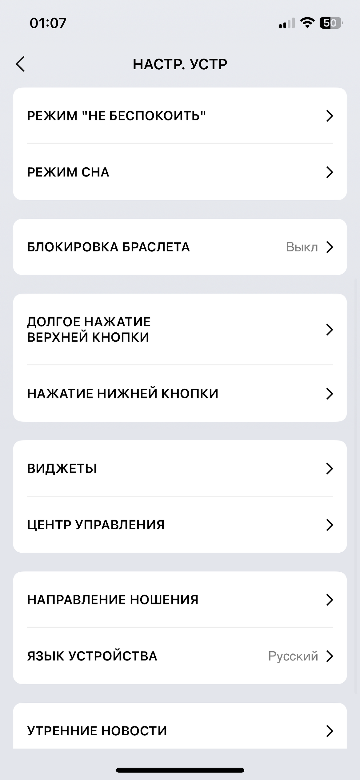 Перенастраиваются действия на кнопки управления, виджеты, действия в меню быстрого доступа, пункты основного меню часов. Можно выставить спящий режим, чтобы часы не тревожили во время отдыха, или режим «Не беспокоить». Даже интенсивность вибрации при оповещениях — и та настраивается!