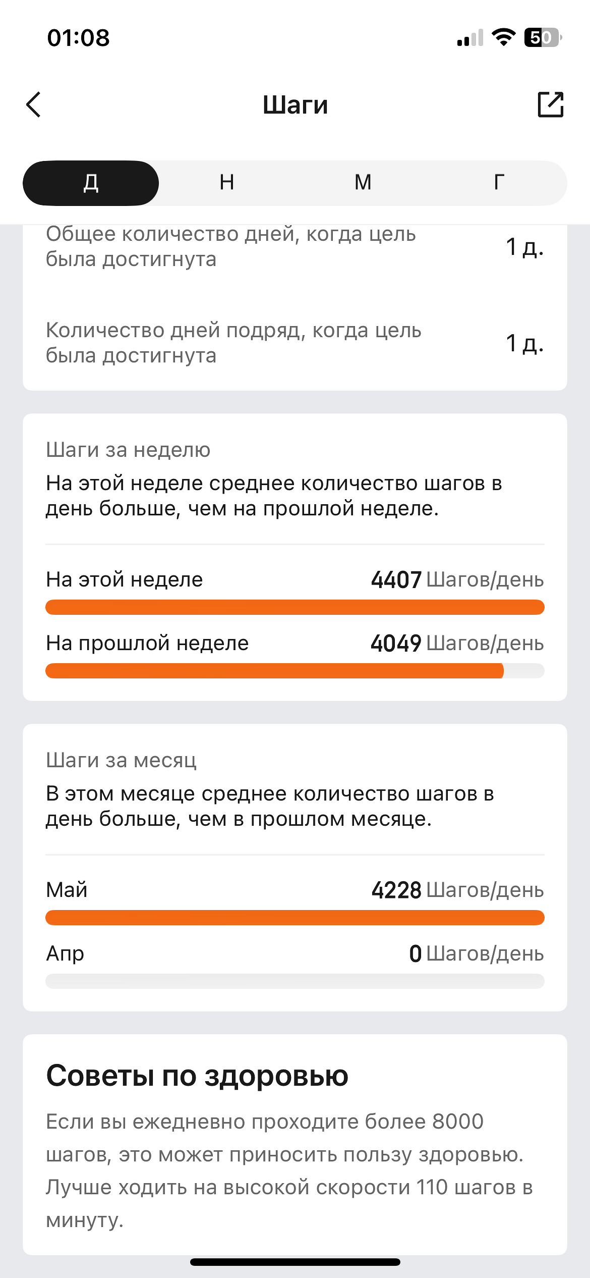 В целом, все основные параметры устройство определяет хорошо. Дополнительный бонус — всевозможная статистика в приложении, разбитая по группам (здоровье сердца, физподготовка и т.д.).