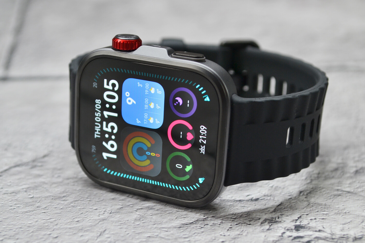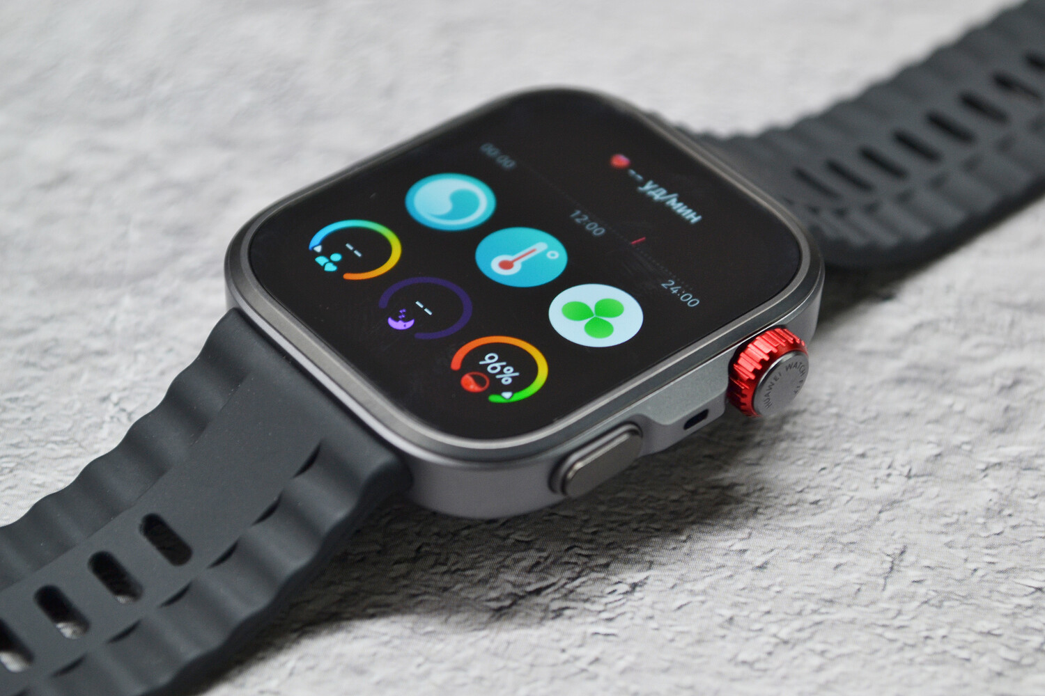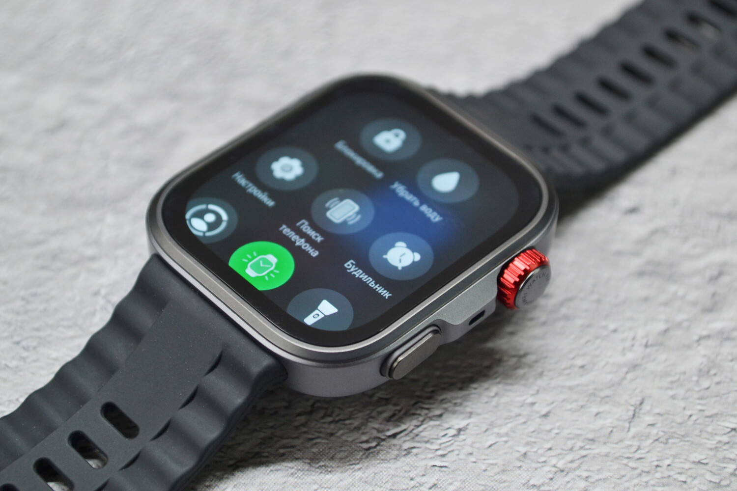 Вращающаяся «заводная головка» справа выкрашена в красный цвет, ее приятно крутить из-за тактильной отдачи, она двигается непрерывно. Расположенная под ней боковая кнопка запрограммирована на быструю активацию отслеживания тренировок.