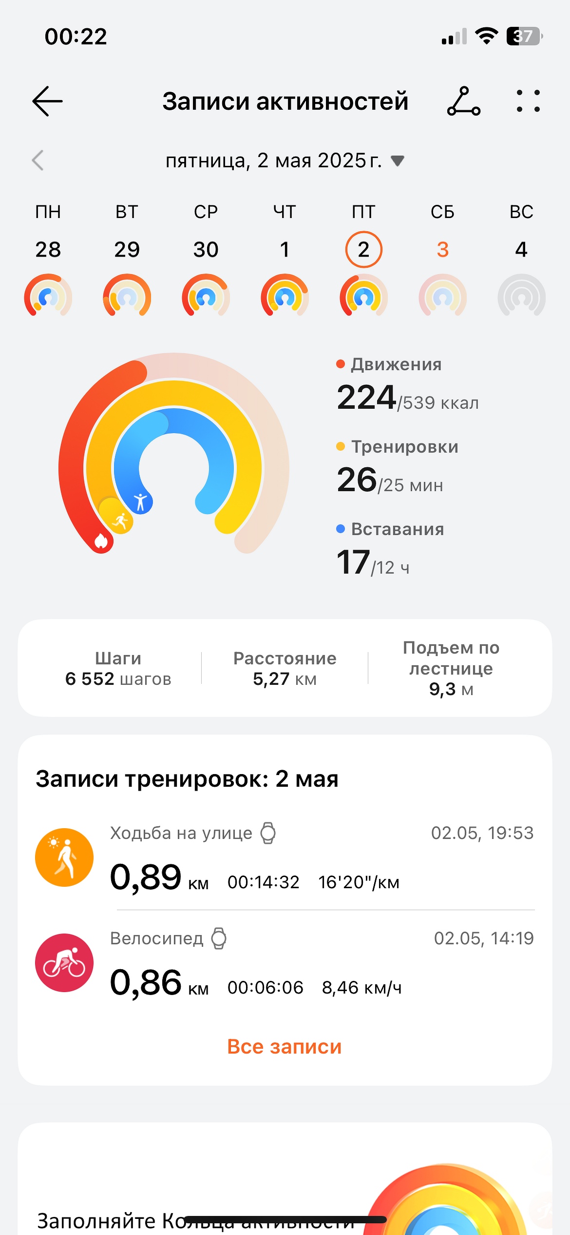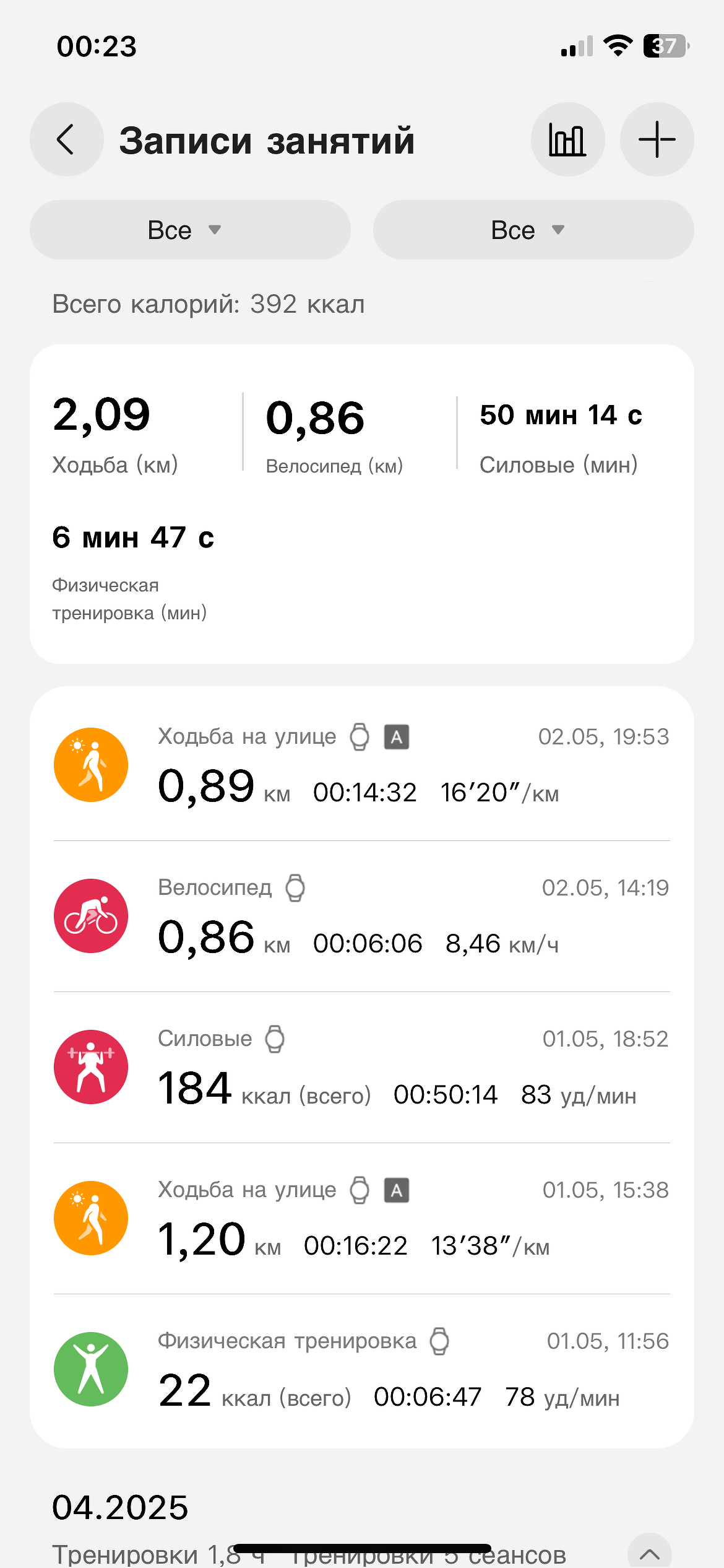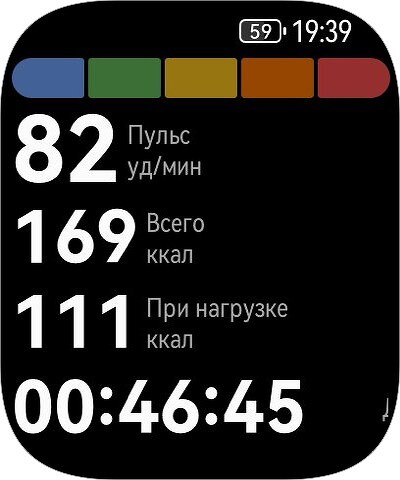 Все основные параметры отображаются на экране. Но после тренировки есть смысл заглянуть в приложение HUAWEI Здоровье, где будет опубликована подробнейшая статистика.