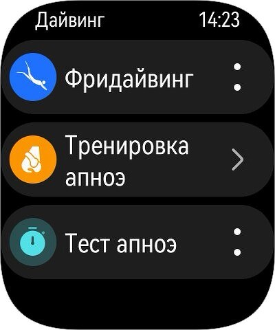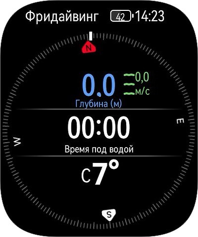 С часами возможен фридайвинг (погружение без акваланга) на глубине до 40 метров — девайс будет следить за безопасностью, отслеживая глубину, скорость, время погружения и температуру. Вообще есть поддержка дайвинга, плавания в открытой воде и бассейне, парусного спорта и других водных тренировок.